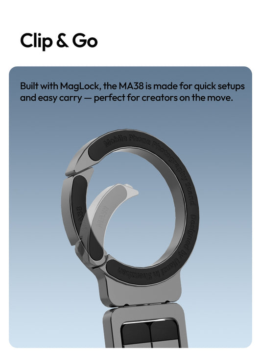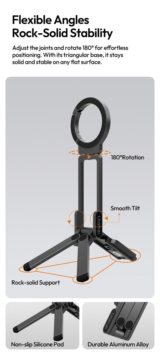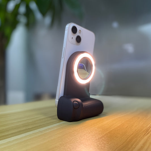 Suporte de Câmara para Telemóvel com Controlo Remoto Magnético 360° e Luz Integrada