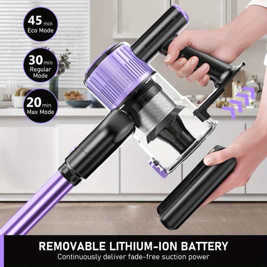 High Suction Home Cordless Vacuum Cleaner, 10-in-1 Multi-Purpose Cane Vacuum Cleaner, 45-Minute Range, 3 Suction Modes with Upgraded Green LED Lights And Tangle-Free Brush for Home, Hardwood Floors, Carpets And Pet Hair.
