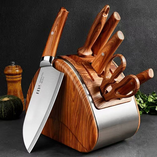 15 Pieces High Quality Chef Knife Set with Wooden Block, Non-slip Hollow Handle for Kitchen Scissor