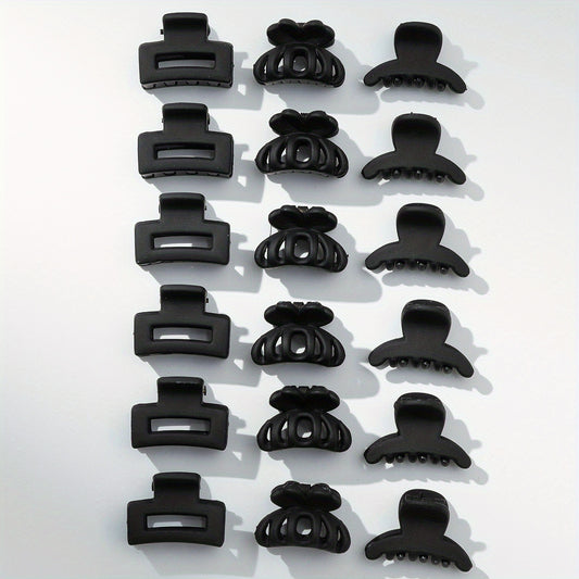 18PCS Rubber Frosted Black Square Hair Claw Mini Small Hair Clip Simple Hair Accessory Female