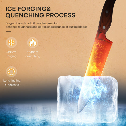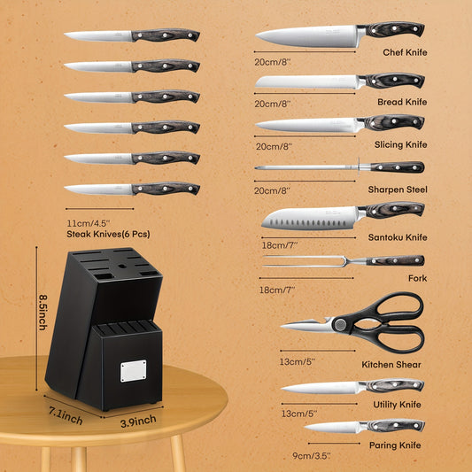 15 Pieces High Quality Chef Knife Set with Wooden Block, Non-slip Hollow Handle for Kitchen Scissor