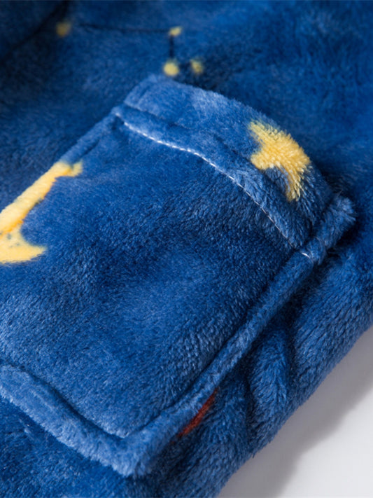 Kids Flannel Bathrobes Boys Hoodie Robes Soft Astronaut Planet Print Sleepwear Kids Clothes