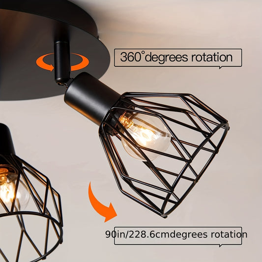 Kitchen lighting fixtures are ceiling mounted, with a three way rotating black iron lampshade, suitable for use in kitchen farmhouses, restaurants, porches, corridors, etc. ( excluding E14 bulbs)
