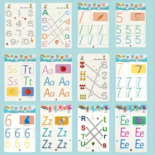 Kids' Reusable Magic Practice Workbook Set with Interactive Writing Activities - -Style Number & Letter Tracing Exercises, Color-Coding Games, ABCs & 123s Learning Book with Answer Key for Homeschool,, Classroom - Durable & E