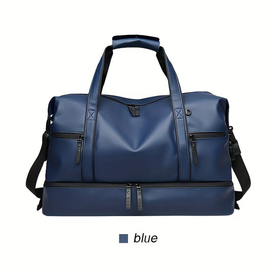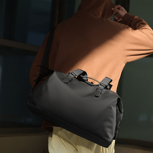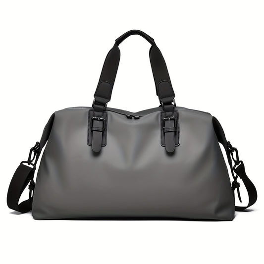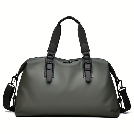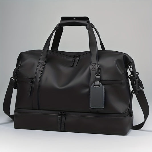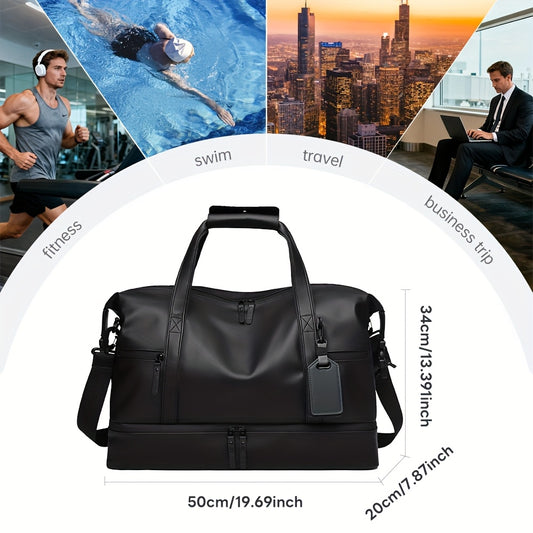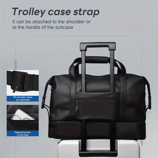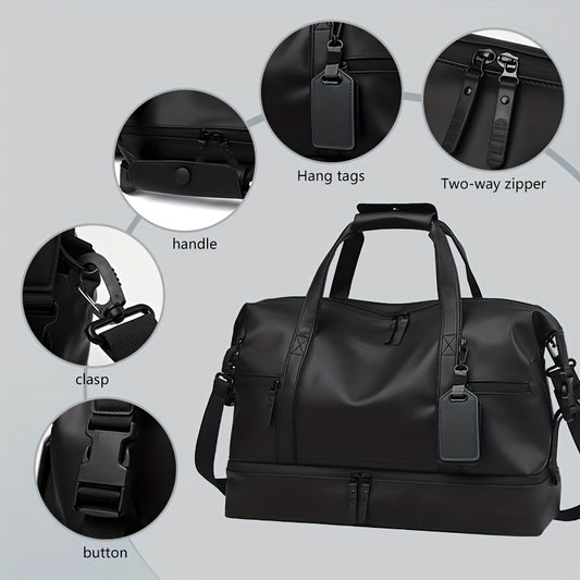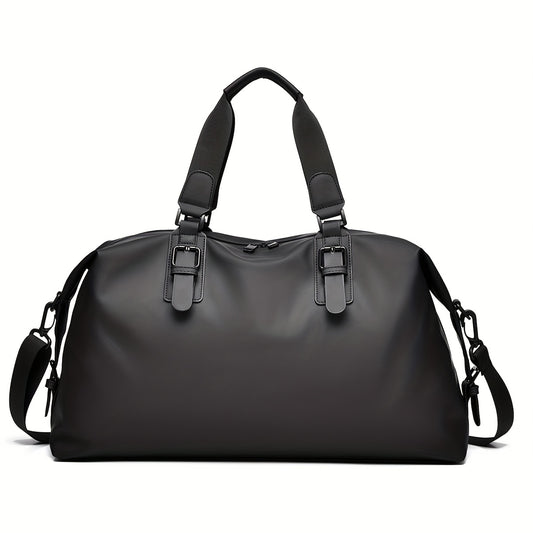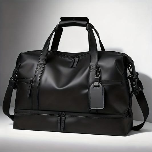 Large Capacity Gym Bag, Travel Duffel, Suitcase - Convertible Carry-On/Luggage with Zippered Front Pocket, Sturdy Handles - Compatible with TSA Locks - Business & Fitness Use - Elegant Black Synthetic -like Exterior - Easy-Cl