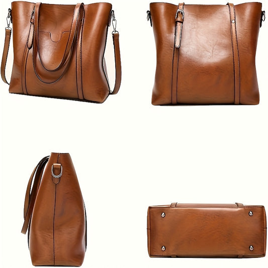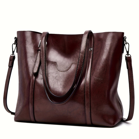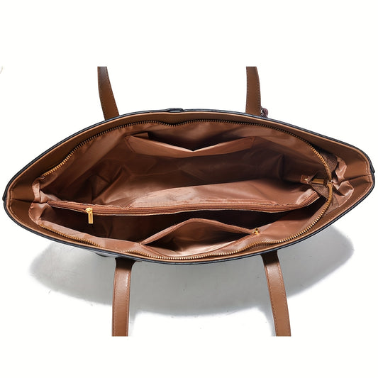 Large Capacity Vintage-Style Synthetic Tote with Fixed Shoulder Strap, Zipper Closure & Polyester - Coffee Brown, Multiple Pockets, Adjustable Shoulder Strap, Hand Washable - Ideal for Everyday Use, Small Purse