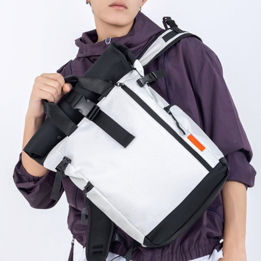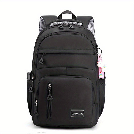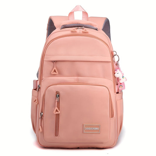 Large Capacity Double Shoulder Bag, Solid Color Fashion Casual Nylon Laptop Backpack with Adjustable Straps, Women's Stylish Versatile Cute Schoolbag