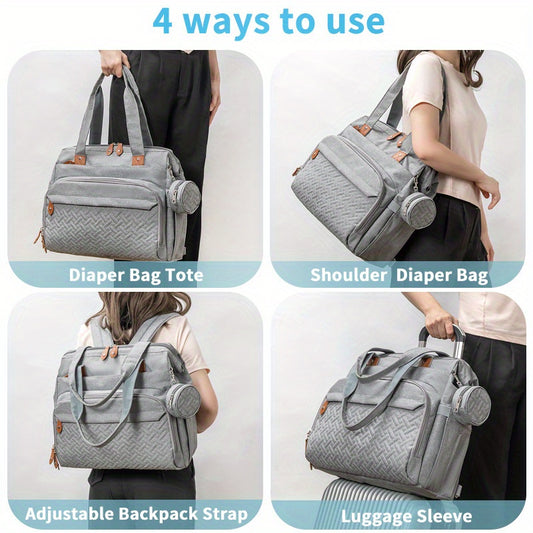 Large Capacity Insulated Mommy Backpack for Moms - Multifunctional Diagonal Crossbody Bag with Multiple Compartments, Soft Shell Oxford Fabric, Gray/Black, Perfect for Travel and Daily Use, Travel Backpack