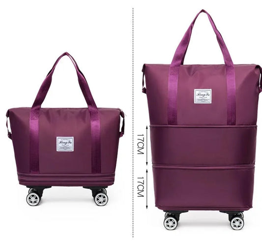 Large Expandable Waterproof Polyester Luggage Travel Bag Foldable Gym Sport Training Weekend Oxford Rolling Duffel Bag