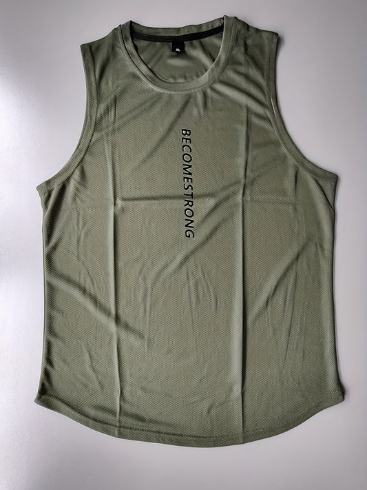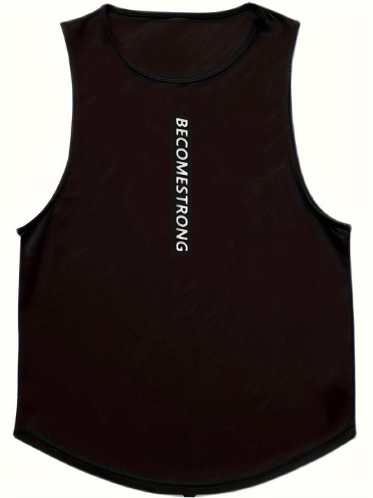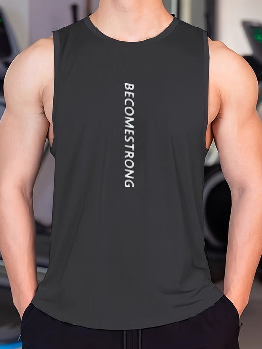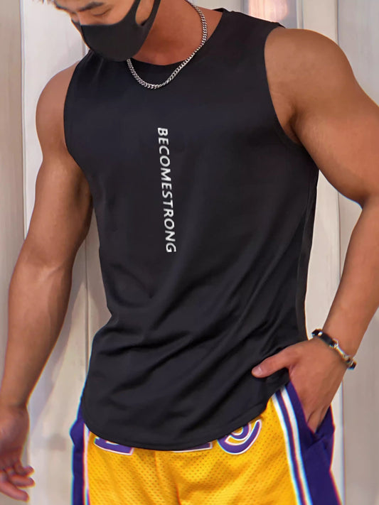 Letter Print Comfy Breathable Tank Top, Men's Casual Stretch Sleeveless T-shirt For Summer Gym Workout Training Basketball