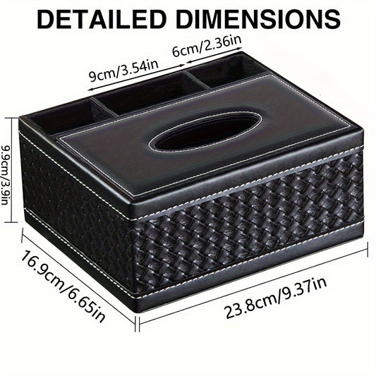 LDQ Multi-Functional Faux Leather Tissue&Storage Box with 4 Compartments Includes Remote Control&Household Napkin Storage, Wipe-Clean in Seconds, Ideal for Living Room, Study&Café Countertops Perfect for Home Supplies Back t