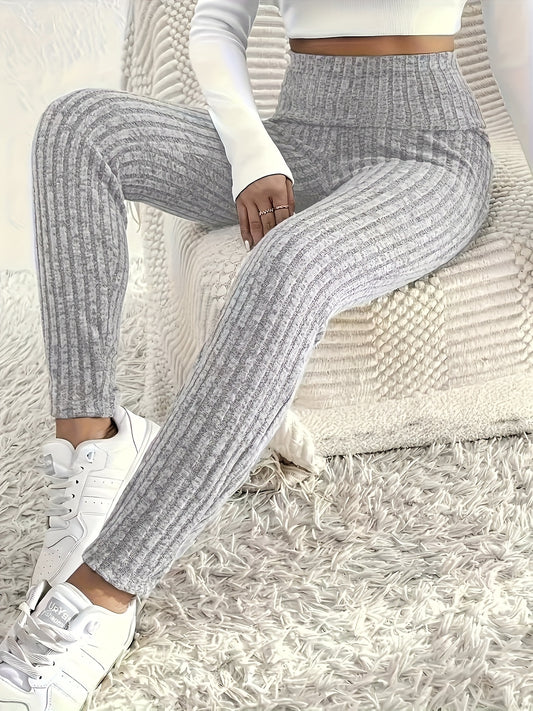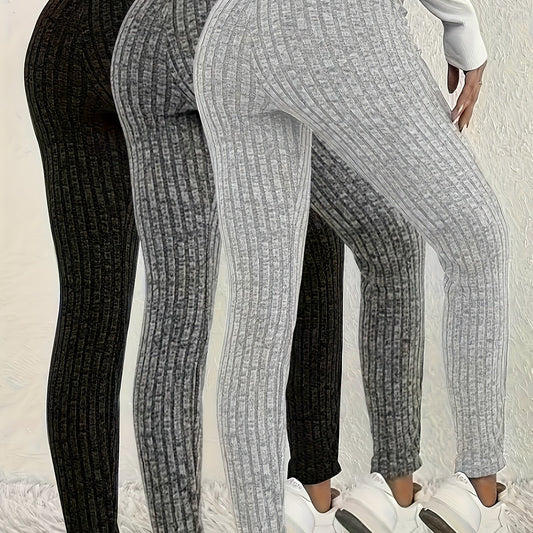 Leggings Femininas de Cintura Alta em Malha Canelada – Pack 3