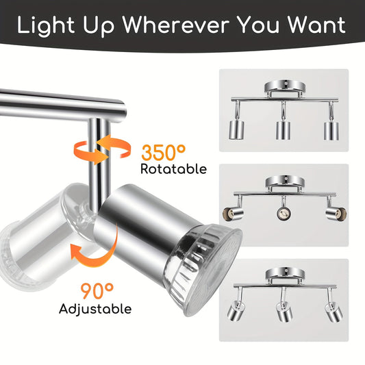 LED Ceiling Light Rotatable 3 Flame LED Spotlight Ceiling Spotlight Modern Ceiling Spotlight (Matte Nickel) for Kitchen, Living Room, Bedroom (Bulb Not Included), Task Lighting, Room Focal Point, Adjustable Downlight, Modern