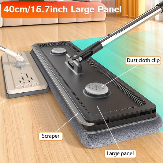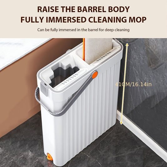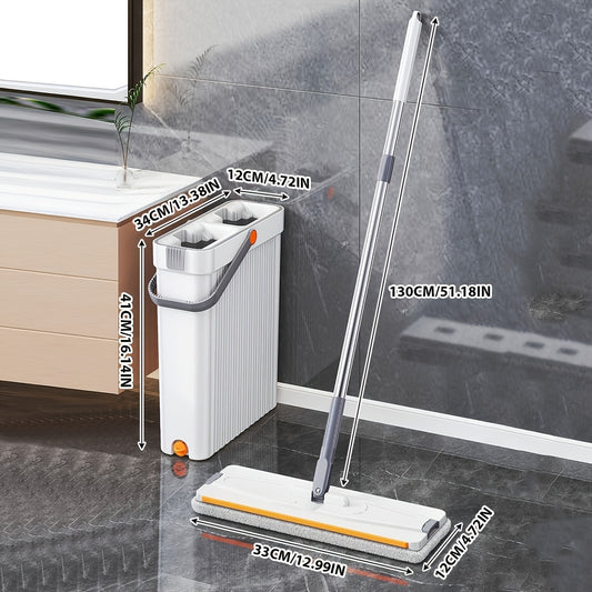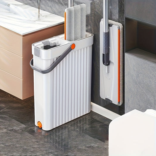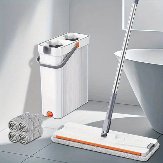 Lazy Hands-Free Flat Mop And Bucket Set with 4pcs Mop Pad- Dual-Purpose Dry And Wet Cleaning, Ideal for Bedroom, Kitchen, Living Room, Bathroom - Durable Plastic, for Household And Floor Cleaning, Tile Marble Floor Cleaning M