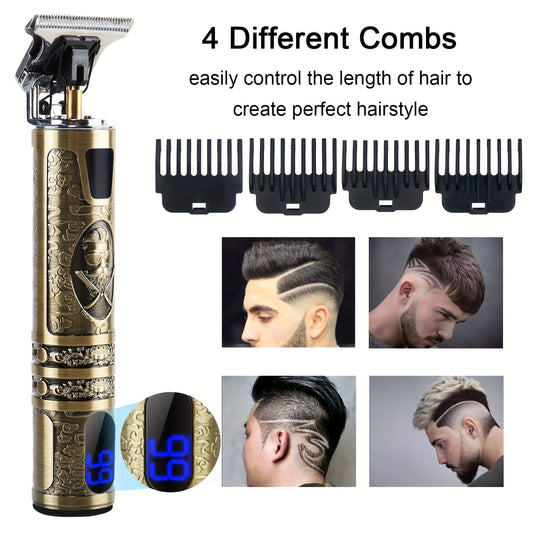 LED Display Men'S Electric Shaver, Professional Men'S Hair Clipper, Hair Trimmer, USB-C Rechargeable, Wireless Long Hair Trimmer, Hair/Beard Trimming Kit with 4 Attachments Combs