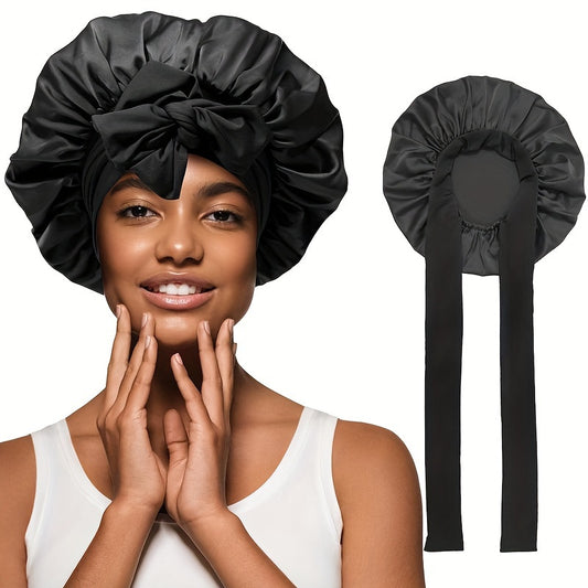Luxurious Pink Satin Sleep Cap for Women - Adjustable, Silk-Like Night Hat with Bowknot, Ideal for Curly Hair, Nylon-Polyamide Blend, Fragrance-Free - Perfect Gift for Ladies