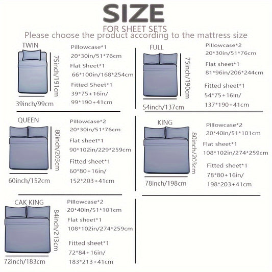 Luxury jacquard Bed Sheets Set 40.64cm deep pocket - 4pcs Bedding - Shrinkage and Fade Resistant - Easy Care 1flat+1fitted+1/2pillowcase