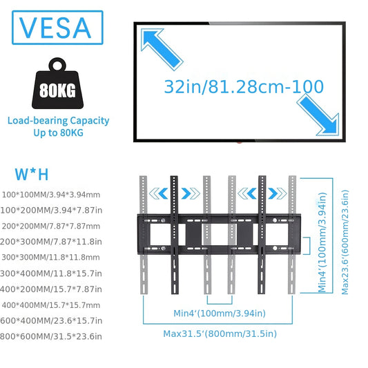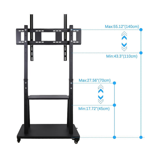 Mobile TV Stand,Rolling TVs Cart on Wheels Height Adjustable Heavy-Duty Floor Stand Base for 81.28-254.0 cm LCD LED OLED Flat Panel Screens Movable Holds up to 79.83 KG with Shelf, Portable Tv Stand, Tv Unit for Living Room,