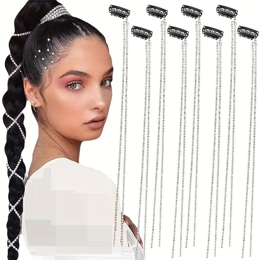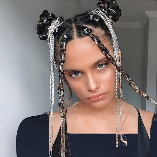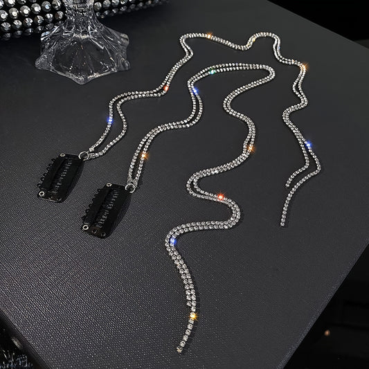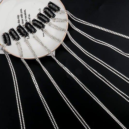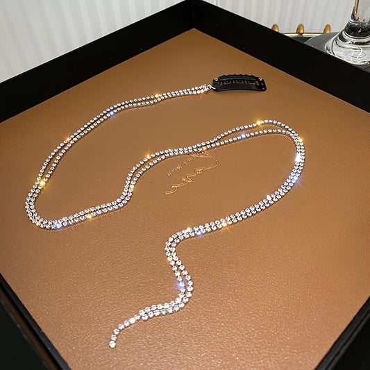 Minimalist Zinc Alloy Hair Clips with Full Rhinestone, Long Tassel Crystal Hairbands for Women, Solid Color Dress Up Headbands for Wedding Party, Single Piece