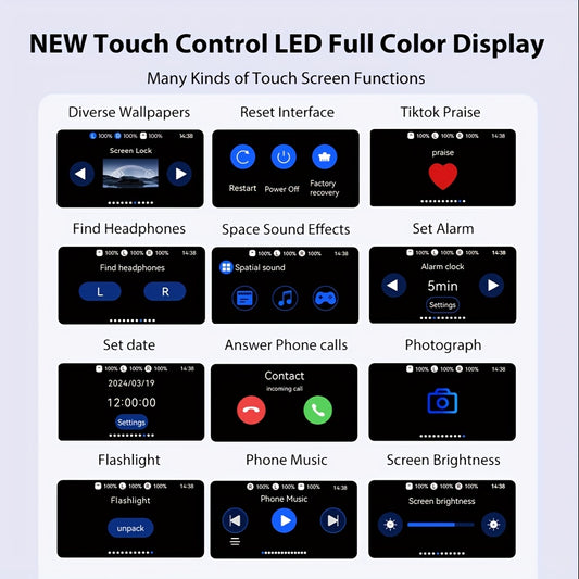 Miniso X29 Open-Ear Wireless Earbuds with Touch Screen & Full Color Display, HiFi Sound, Long Range Wireless Headphones, -C Charging Case, Built-in Mic, Compatible with / Smartphones, Compatible with 150+ Apps (Spanish/Englis