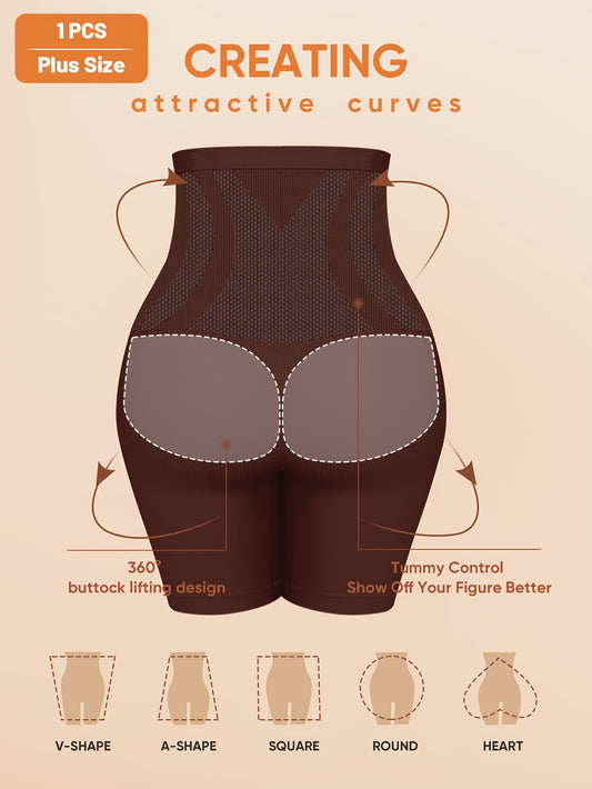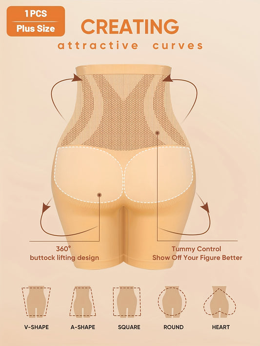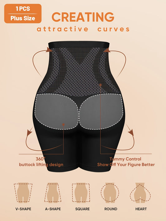MIOTAN Women'S Plus Size High-Waist Shaping Shorts - Breathable Mesh Nylon, No Padding, High Support Butt Lifting & Tummy Control, Solid Color, 1XL-5XL, Underwear, Sleek Underwear, Comfortable Fit