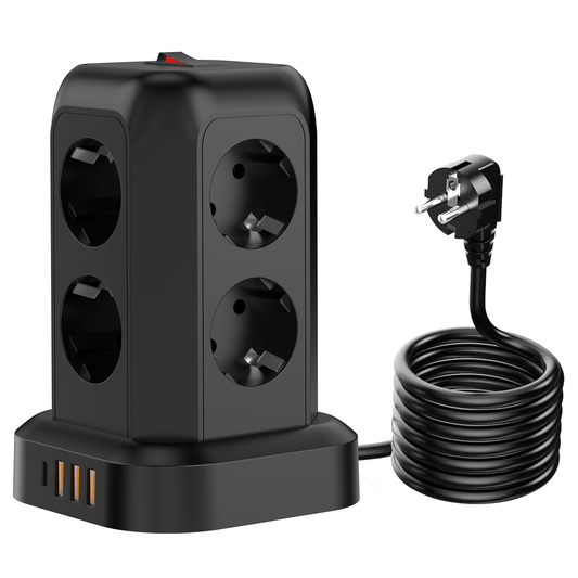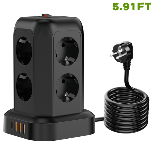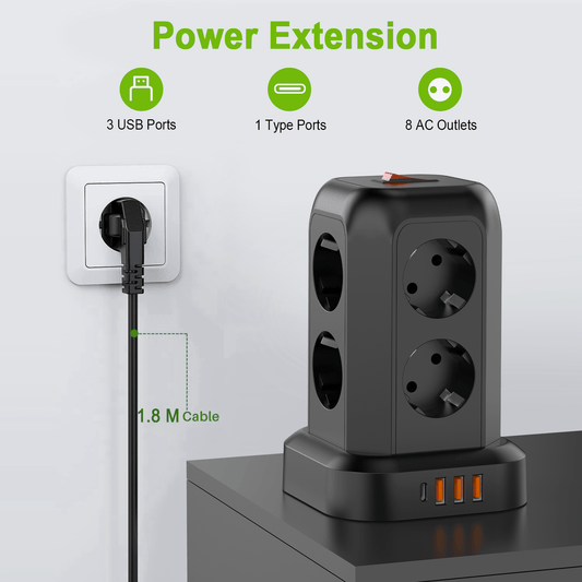 Multi-Plug Socket Distributor with 8 Sockets, 3 USB Ports (Including 1 USB-C), Side-Entry Plug Wall Charger, Essential for Cruising, Travel, Office, And Dorm