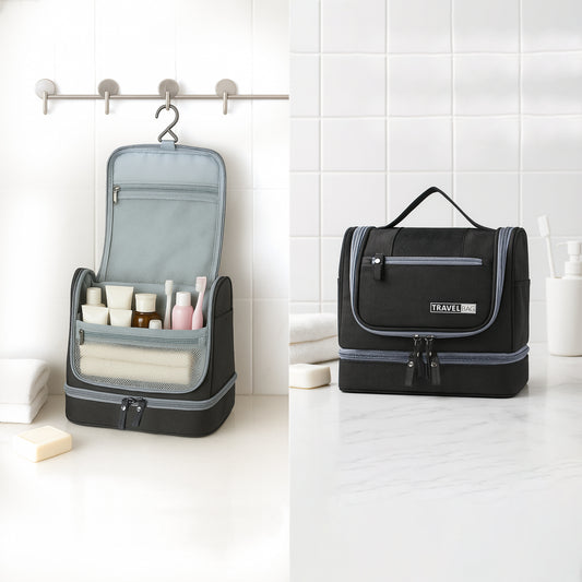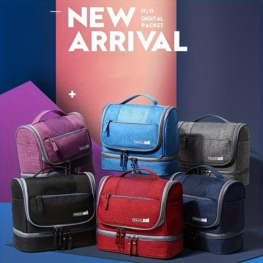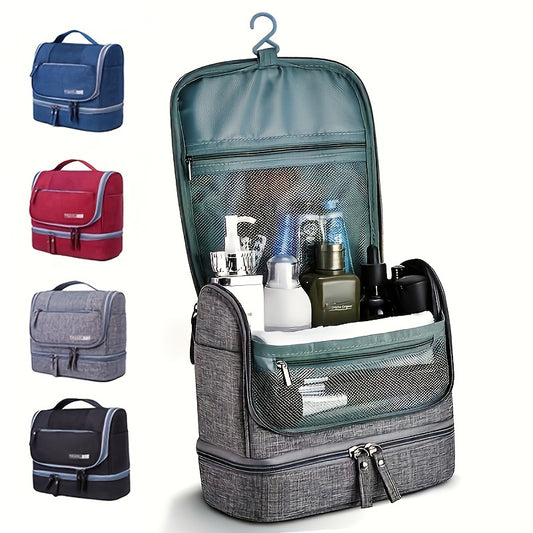 Multi-Functional Travel Organizer with Top Zipper Closure & Hanging Loop - Heavy-Duty High Quality Folding Toiletry & Cosmetic Case with Multiple Compartments, Golden-Tone Hardware, Durable Fabric Construction - Ideal for Bus