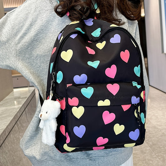 Multi-Color Hearts Pattern Design Backpack, Korean Style, Large Capacity, Simple And Lightweight Backpack