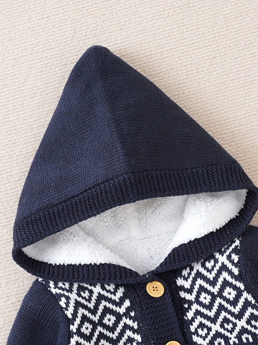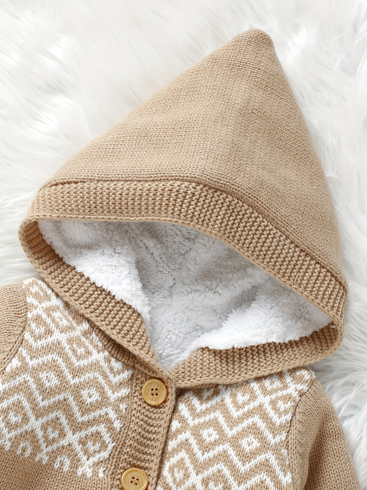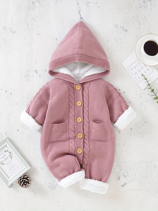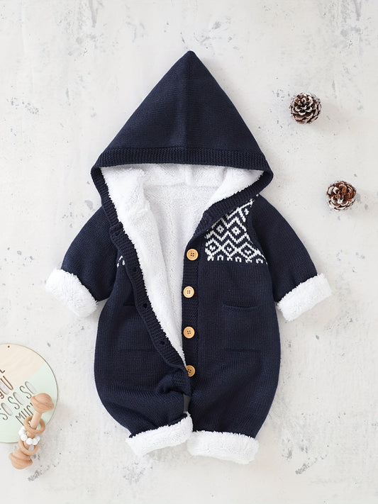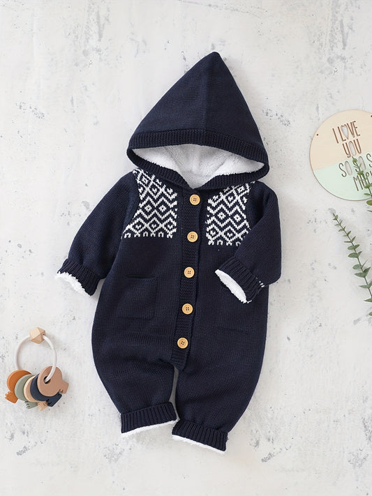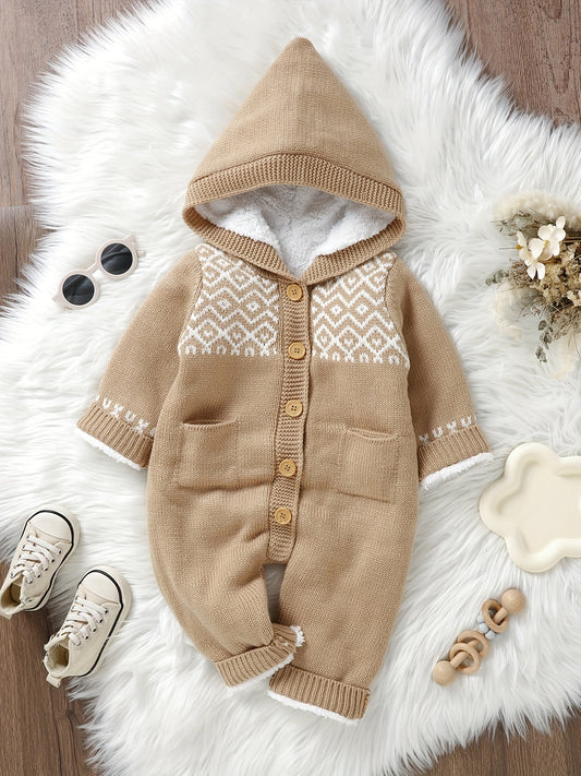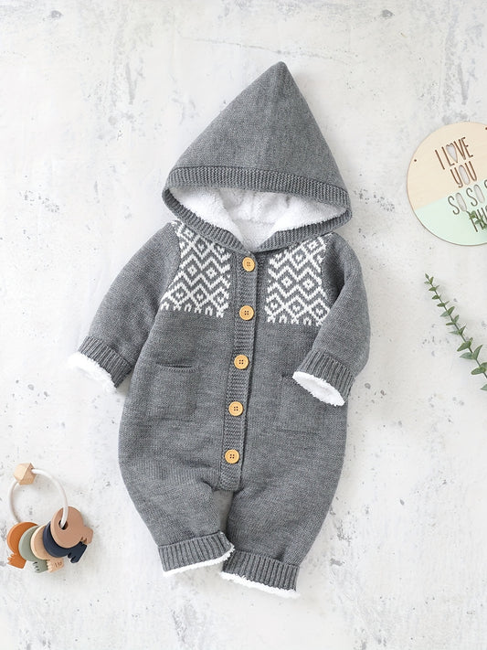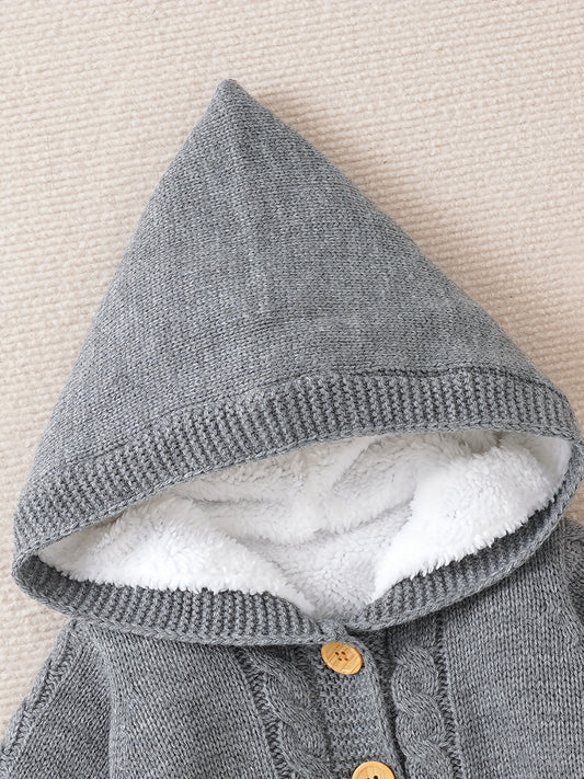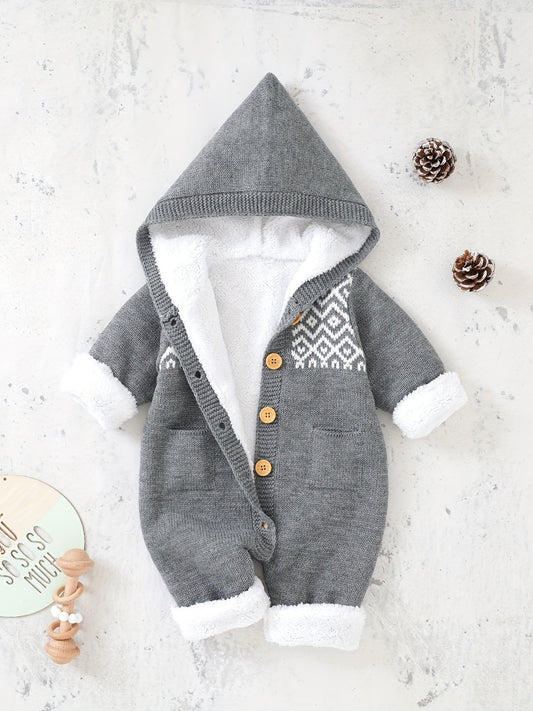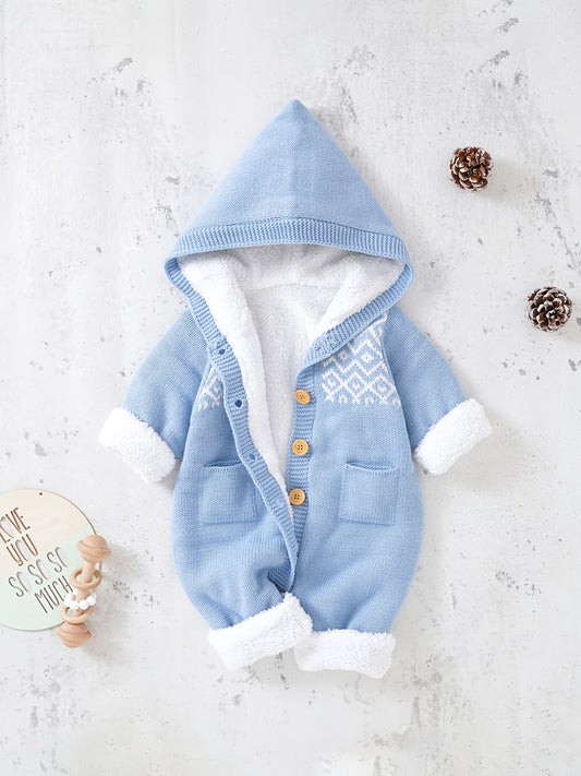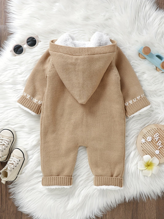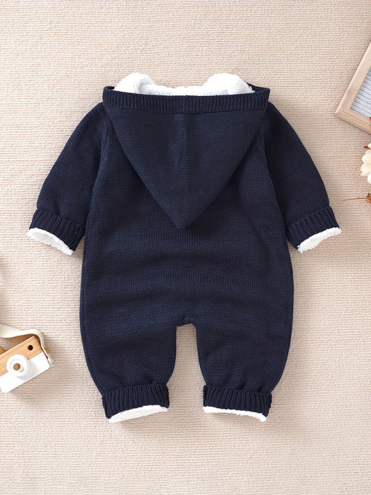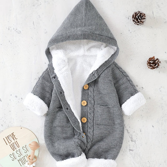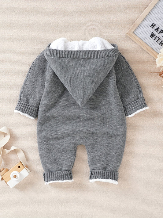 Newborn Boys And Girls Knitted Jumpsuit With Long Sleeve Hooded Pants Jumpsuit