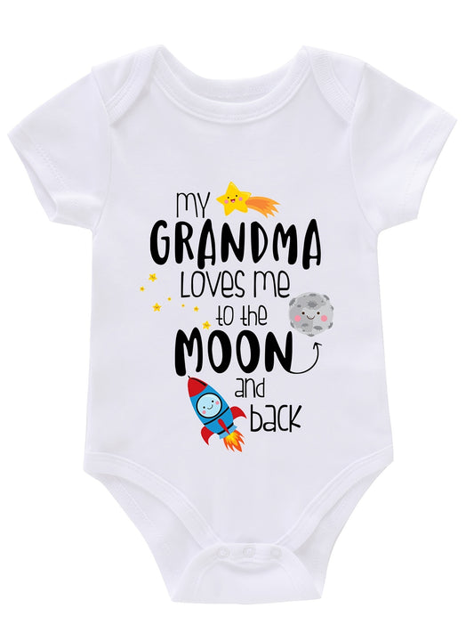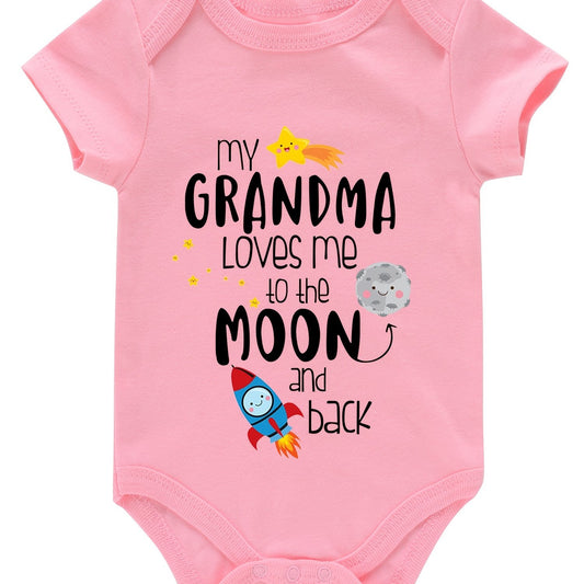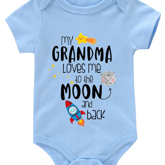 Newborn Infant Short Sleeve Romper "My Gramdma" Print Bodysuit Onesies For Baby Girls And Boys, Suitable For Indoor And Outdoor Wear