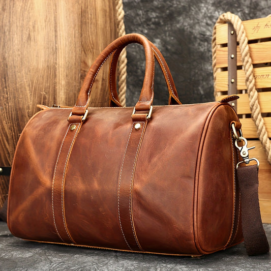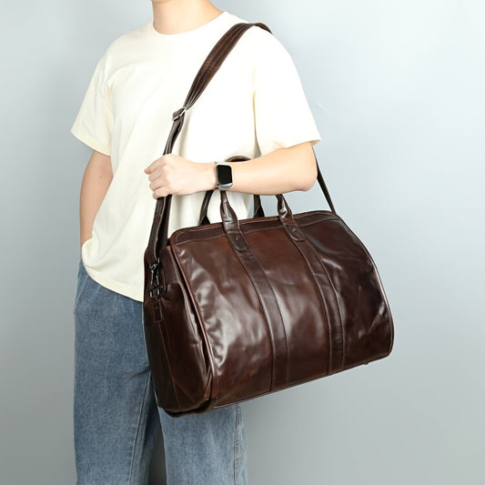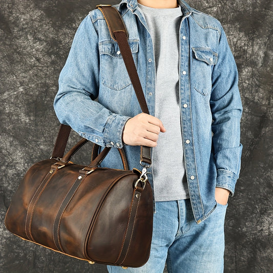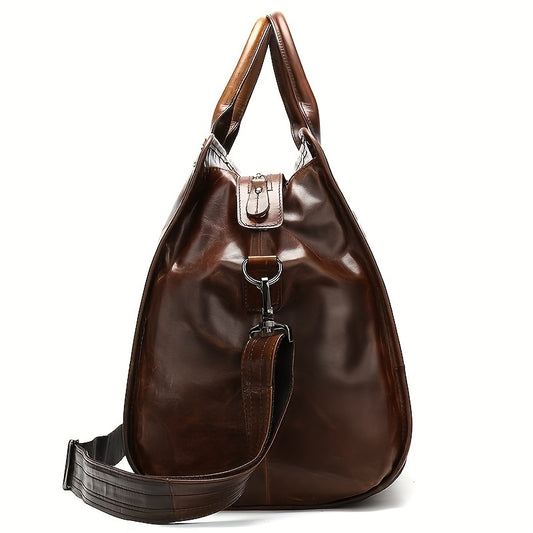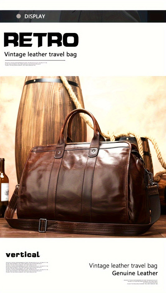 NIUCUNZH Men's First Layer Cowhide Leather Travel Duffel Bag - Large Capacity Carry-On with Adjustable Straps, Multiple Compartments & Reinforced Handles, Sleek Black for Weekend Trips, Daily Commute & Casual Travel, Travel B