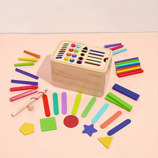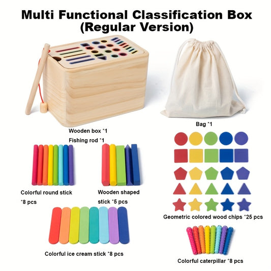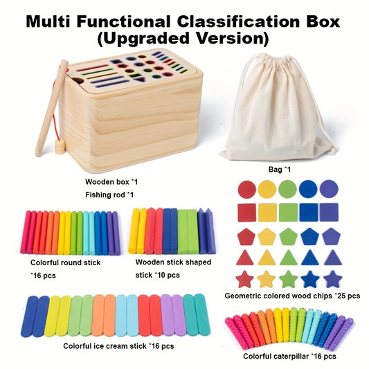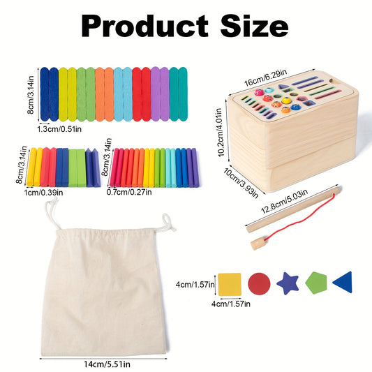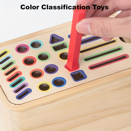 New Wooden Color Sorting Box Toy, Multi-Functional Colorful Wooden Sticks and Pieces, Square Wooden Box Matching Game, Hand-Eye Coordination Development, Christmas Gift for Ages 3+, Fine Motor Skills, Preschool Learning, Enga