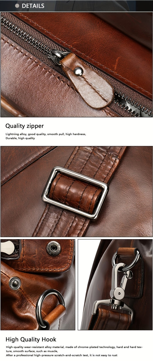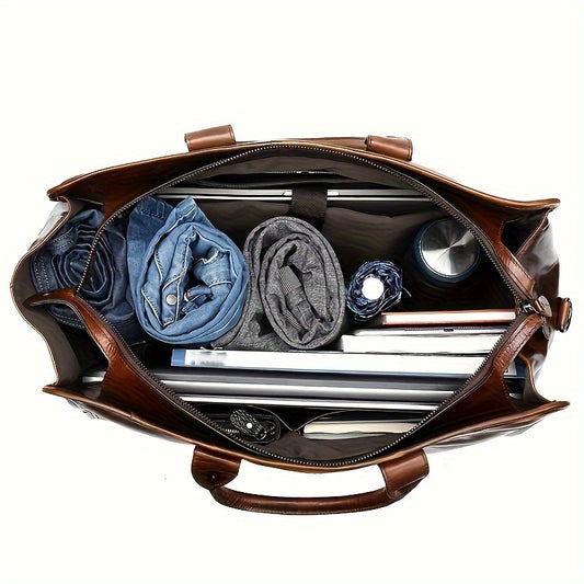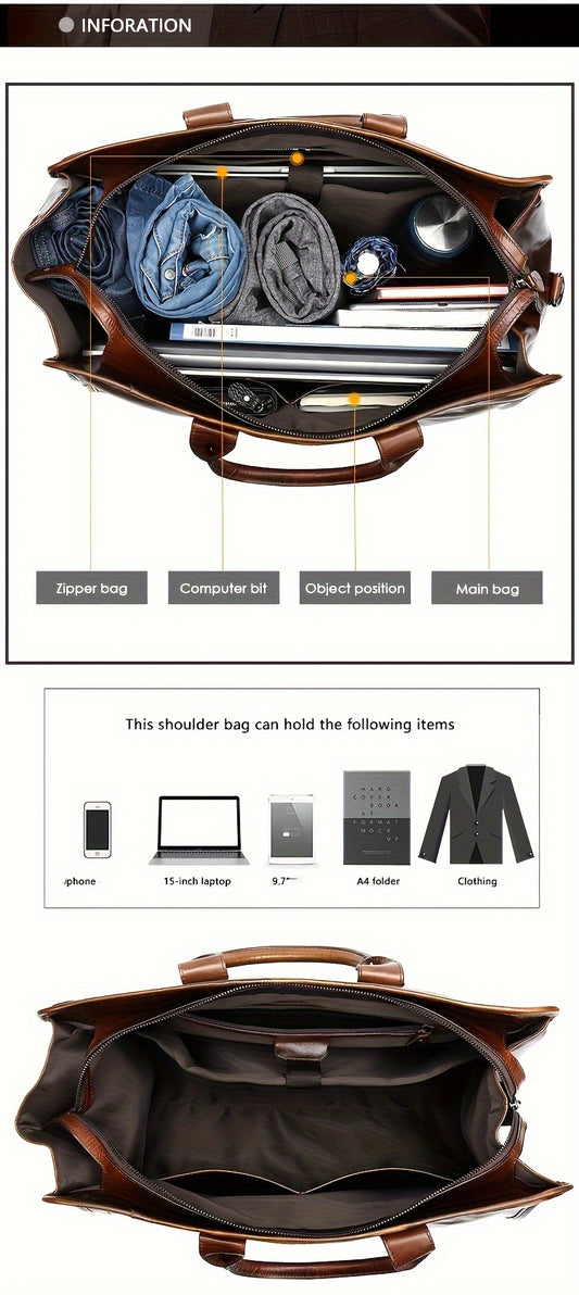 NIUCUNZH Men's Vintage Genuine Genuine Leather Tote Bag - Adjustable Shoulder Strap, Multiple Compartments, Durable Head Layer Genuine Leather for Business Commuting & Travel (Light Brown/Dark Brown/Black), Office Accessory,