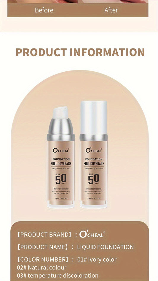 O'CHEAL 2-color Brightening And Isolating Liquid Foundation, Moisturizing And Breathable, Natural Waterproof, With New Temperature Sensitive Color Change Factor, Color Change Better Matches Your Skin Color