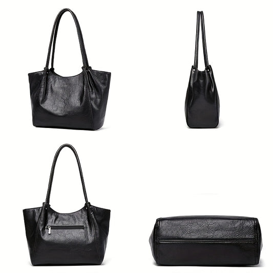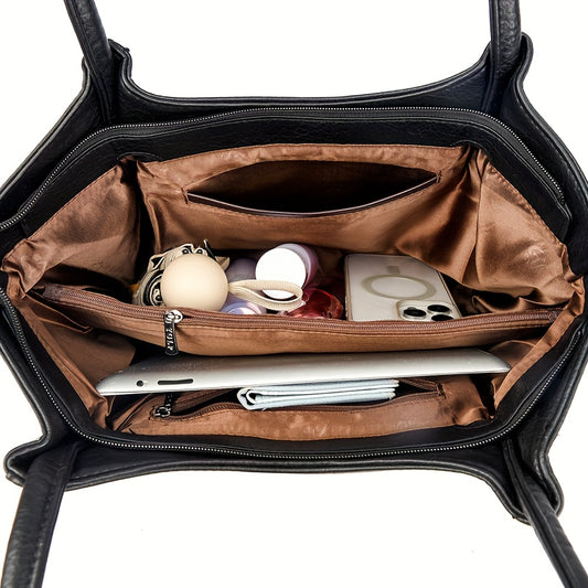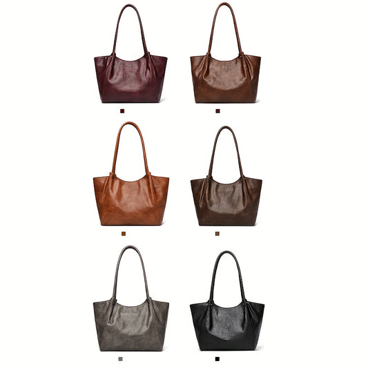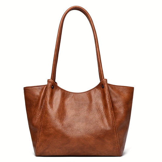 OGEHUAFEE Women'S Vintage Tote Bag - Large Capacity Synthetic Shoulder Bag with Zipper Closure, Fixed Strap & Nylon Lining, Retro Minimalist Design for Commuting, Travel, Shopping, Dates (Coffee Brown, Light Brown, Dark Brown
