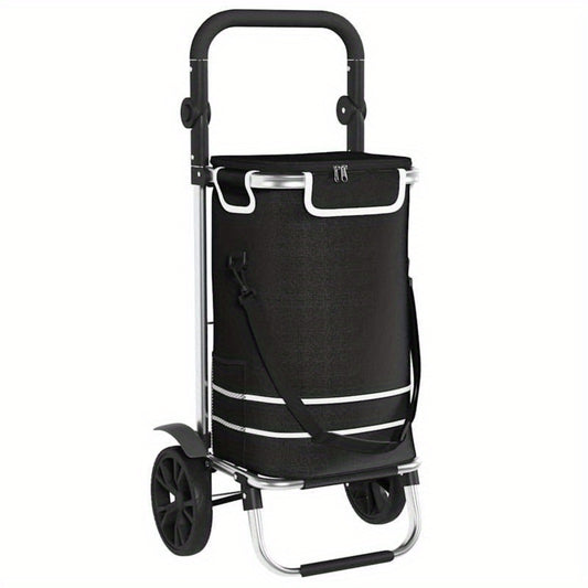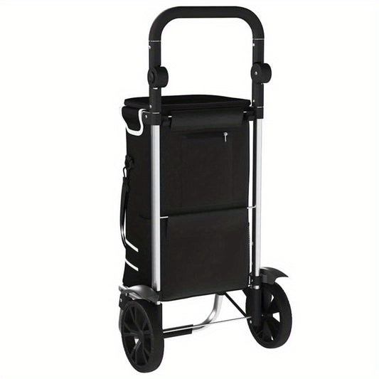Outdoor shopping cart, shopping trolley with wheels and adjustable handle, black, 40L, durable and suitable for outdoor use, Shopping Trolley with Wheels And Bag, Large Shopping Cart with Wheels, Trolley Bags for Shopping, Fo