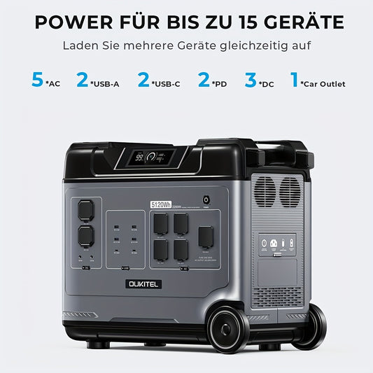 OUKITEL 1024Wh/5120Wh/5120Wh P1000PLUS/P5000/P5000PRO Power Station, Solar Generator with LiFePO4 Battery, 1000W/2200W/4000W AC Ports, Multiple Interfaces, Fast Charging Solar Generator for Camping&Outdoor Charging Station, T