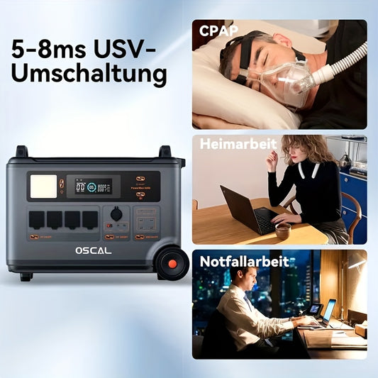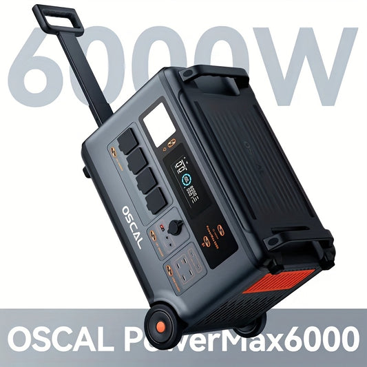OSCAL Powermax 6000 Solar Generator, 3600Wh Battery Power Station, Expandable to 57.6Kwh, 120/240V Split Phase Voltage 6000W AC Outlets (7200W Peak), 2200W/1.96H Fast Charging, Emergency for Home, Battery Backup, Outdoor Camp