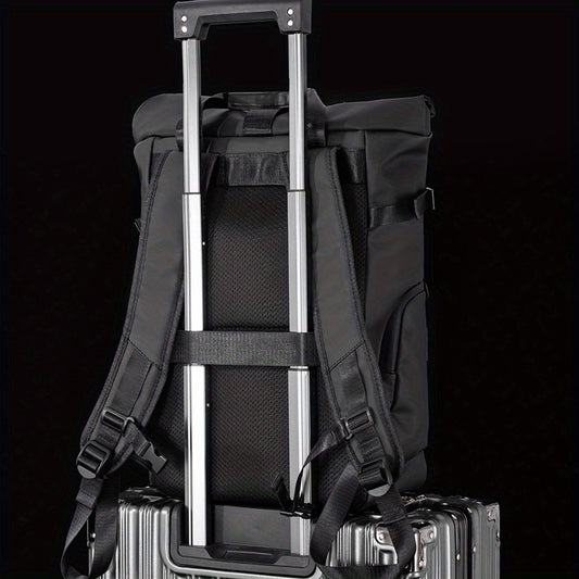 Oxford Commuter Business Backpack - Large Capacity, Adjustable Shoulder Straps, Multiple Compartments for Laptop & Travel Essentials, Black with Orange Tag, College Student Bag, Travel Backpack