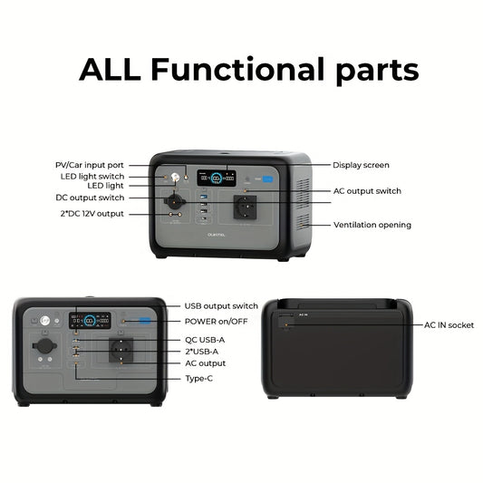 OUKITEL P800 Portable Power Station - 512Wh Solar Generator with 800W AC Output, 1600W Surge, 0.9H Fast Charge, LiFePO4 Battery, USB-C PD 100W, European Plug - For Camping, Rv, Emergency Power Supply, Outdoor, Traveling, Fish