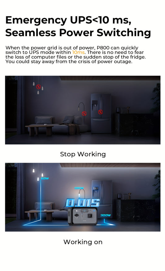 OUKITEL P800 Portable Power Station, 512Wh Solar Generator (w/Lithium Lron Phosphate), 800W(Surge 1600W) AC Output/Sine Wave 230V, 0.9 Hour Fast Charge, PD100W For Camping/RV Emergency Power Supply, For RV, Car, Outdoor, Camp