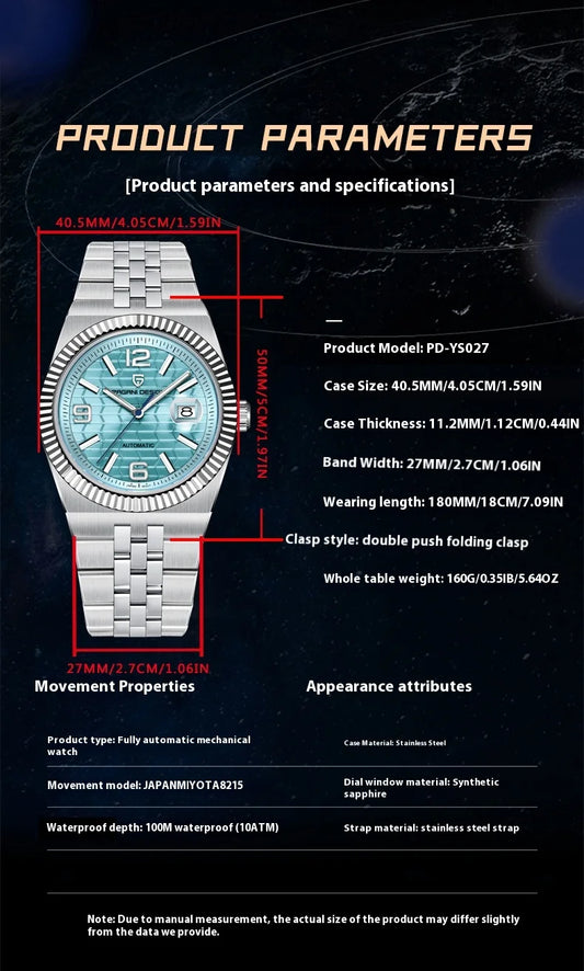 PAGANI DESIGN Men's Watch Fully Automatic Mechanical Stainless Steel Strap Night Light Watch PDYS027