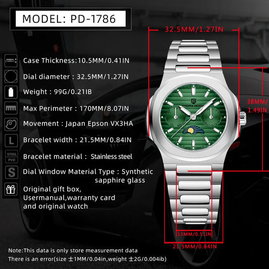 PAGANI DESIGN 2025 New Moon Watch For Men Quartz Multifunction Chronograph Sports Mens Watches Top Brand Luxury Sapphire Mirror