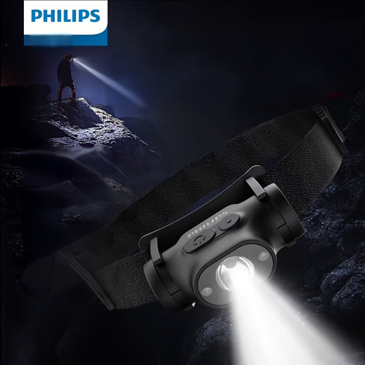 Philips Bright Rechargeable Headlamp: A powerful LED sensor headlight, suitable for emergency lighting and outdoor use. It features intelligent sensing, dual-color switching, an 800mAh lithium battery, and comes with a Type-C