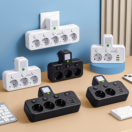 Plug Converter Socket with 5 Sockets, Multi-Port Wall Socket with Independent Switch And Small Night Light Adapter