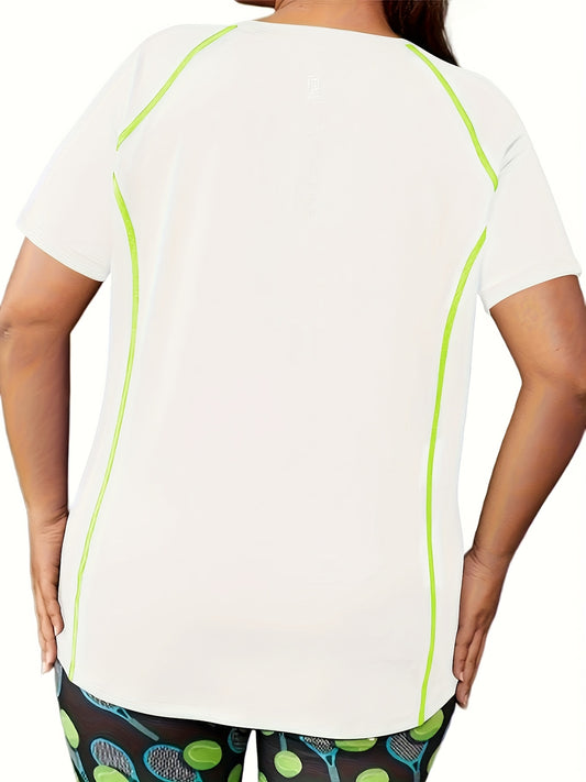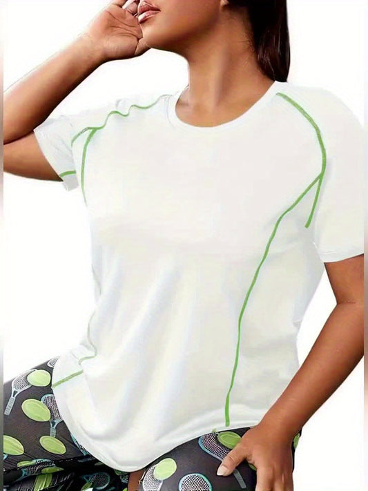 Plus Size Women's High-Elasticity Sport T-Shirt - Breathable Round Neck Short Sleeve Yoga & Studio Workout Top, Machine Washable Solid Color Athletic Tee, Workout Clothes, Gym Clothing, Casual Activewear, Durable Material, Pe
