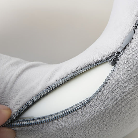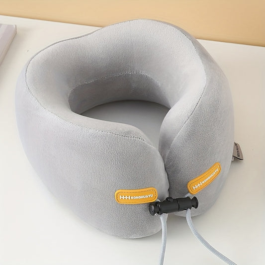 Polyurethane Foam Travel Neck Pillow - Ergonomic U-Shaped Contour Design with Adjustable Strap & 3 Fluffy Earplugs, Medium-Soft Grey Flannel Cover for Airplane, Car, Office & Home Use, Neck Pillow for Travel for Plane, Car Sl