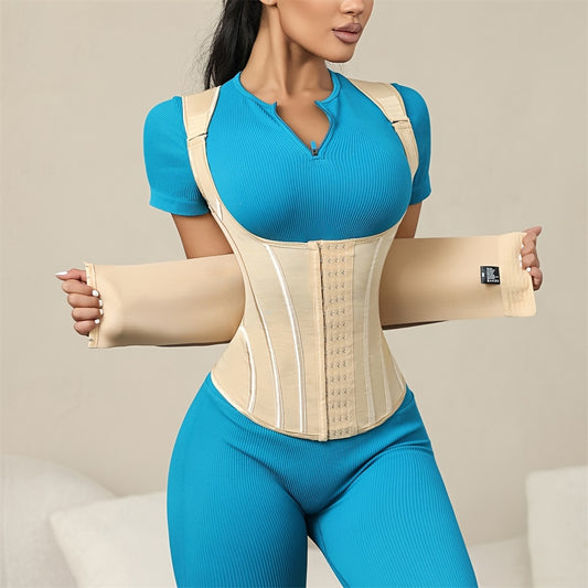 Polyamide Women's Waist Trainer Corset - Back Support with Dual Waist Straps, Adjustable Shoulder Straps, Hard Control Knit Fabric Cincher, Breathable with Steel Frame Support, 72.7% Polyamide 27.3% Elastane, Washable - 1 Pc
