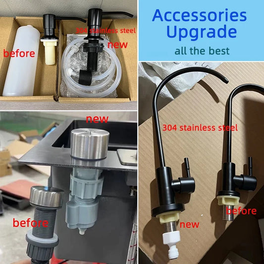 Popular 304 Stainless Steel Sink Kitchen 6846 Multifunction Large Rectangular Waterfall Sinks with Faucet
