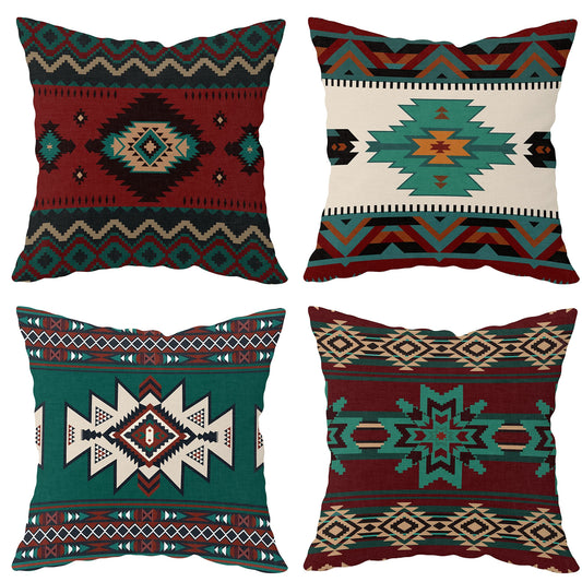 Set Of 4 Western Throw Pillow Covers Aztec Southwestern Native American Tribal Geometric Pillow Cases Turquoise Rustic Decorative Couch Cushion Covers For Outdoor Bedroom Home Decor, 45.72x45.72 Cm (Cushion Is Not Included)
